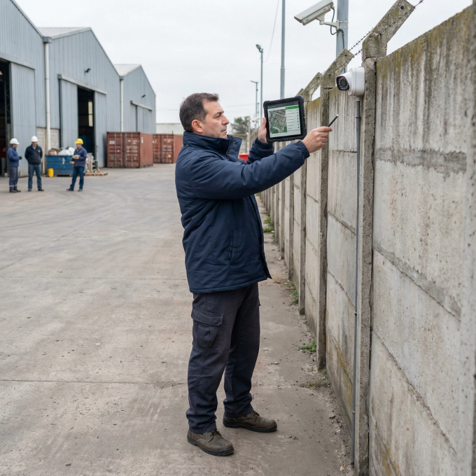 - Seguridad perimetral de plantas industriales Diseño de cercos, iluminación perimetral y zonas de exclusión. Sistemas de detección de intrusión con discriminación de falsas alarmas. Integración de CCTV térmica para áreas extensas de noche. Patrullaje optimizado según análisis de riesgos.