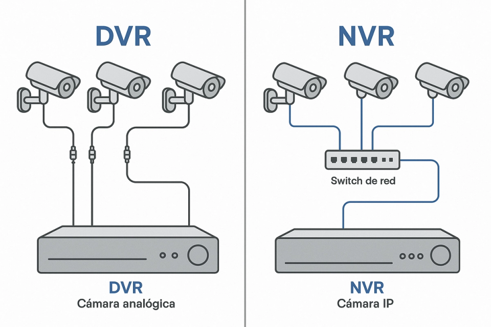 Si estás evaluando sistemas de videovigilancia para tu empresa, probablemente te hayas topado con estas siglas: DVR y NVR. La elección entre uno u otro puede parecer un detalle técnico menor, pero en realidad define completamente las capacidades, costos y futuro de tu sistema de seguridad.