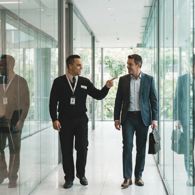 El servicio de recepción es mucho más que abrir puertas y registrar visitas. Es la primera impresión que proyecta tu empresa, el filtro de seguridad que protege tus instalaciones y el punto de contacto que define la experiencia del visitante. En C&R Seguridad desplegamos personal profesional que combina capacitación en seguridad con excelente atención al cliente, capaz de representar tu marca con protocolos personalizados, gestionar accesos con tecnología integrada y resolver situaciones con criterio y amabilidad.
